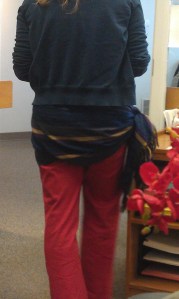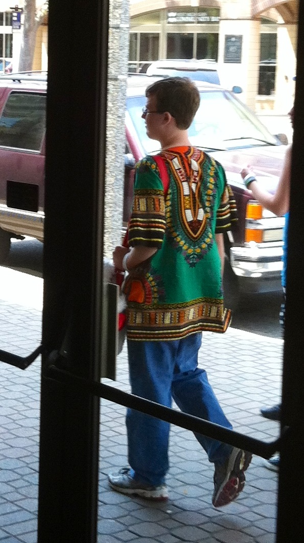 What I’m saying here, dear reader, is nothing more than maybe the wearer of this traditional garment should have thought twice before stepping out in the world wearing this colorful ensemble. I mean just because it matches your sneakers, does not mean that it is socially acceptable. I don’t know if this young man has been to Africa or if it was a gift. Either way, I’m not terribly sure that this garment sends the correct message to his audience.