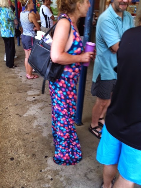 I am simply NOT sure what the statement this person is trying to make other than this may be a failed audition tape from “Priscilla, Queen of the Desert.” Or maybe this picture was taken on the set of Priscilla and she’s an extra. I kept thinking that maybe in that large oversized handbag (also a major fashion fail) would be a CD player or MP3 thing playing “Shake Your Groove Thing” because that is the only thing that could save that outfit right now. But I confess, I’m not positive that anything could actually “save” this outfit…not even if it were on fire and a hunky fireman offered to reach in and grab it from my burning closet. WHICH by the way would not happen because it would not be in my closet in the first place! Now the hunky fireman on the other hand…